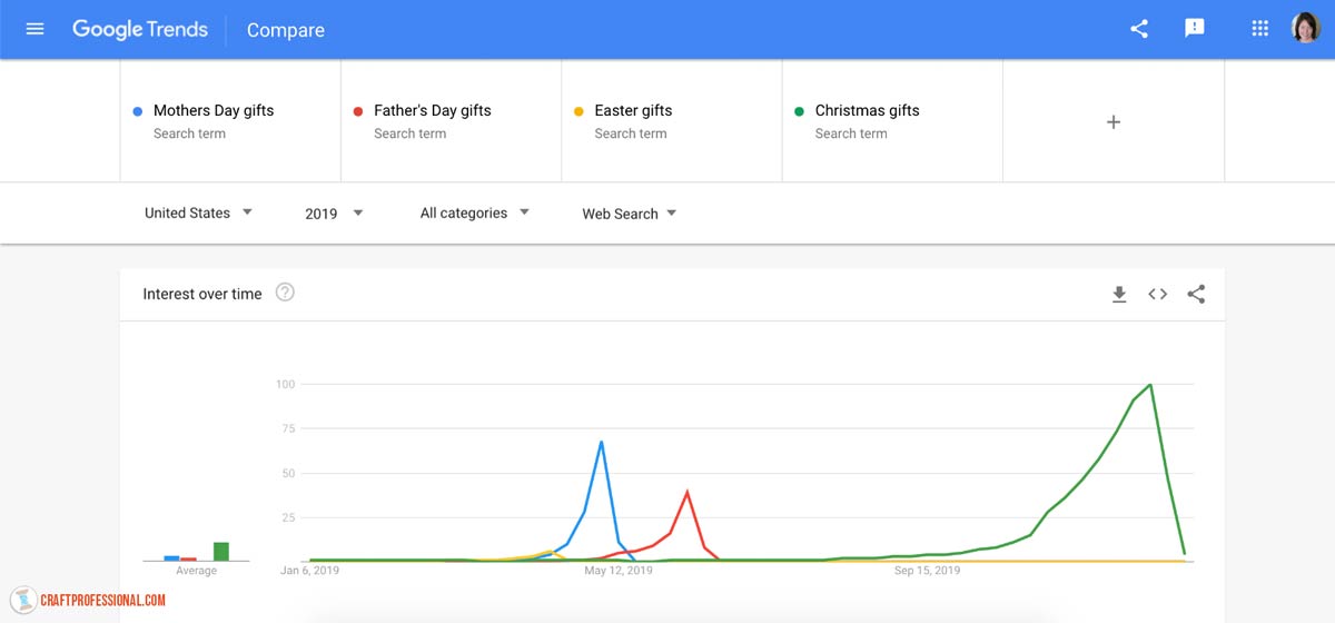You can also try more product-specific searches. Look for increased interest in any of your products that coincides with popular gift-giving times.