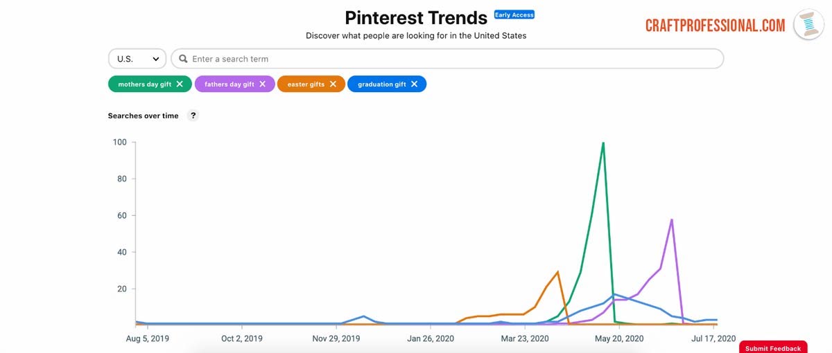 If you want to know when people start searching for Christmas gift ideas or whether Mother's Day is more popular than Easter, the Pinterest Trends tool will help.