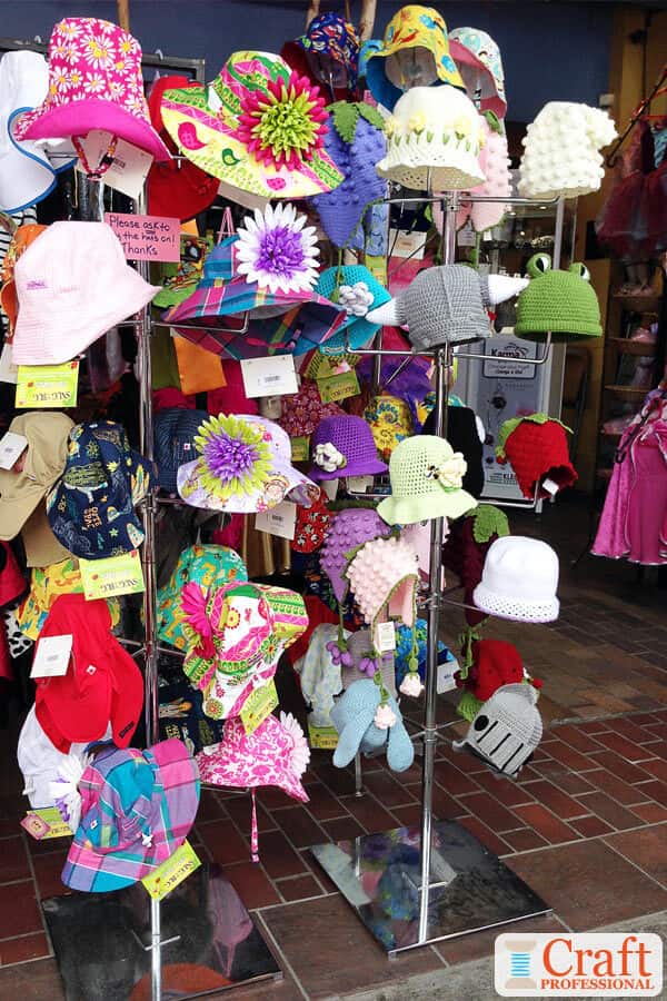 If you sell handmade hats or other small accessories, check out these pictures and get inspiration and ideas to put together your own effective booth for craft shows. If you're looking for hat display stands, I've included sources, using my affiliate links, where you can buy items for your own booth.