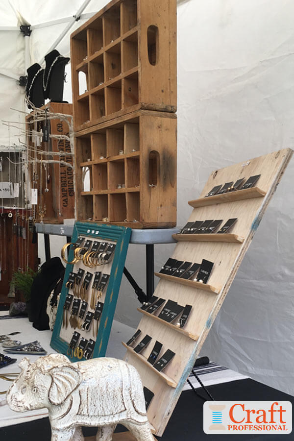 It can be tempting to get fancy with your jewelry booth display, but if your displays are too fussy, customers won't pick up your items for fear of ruining your display. This simple tabletop display encourages customers to handle items, which can really help to boost sales.