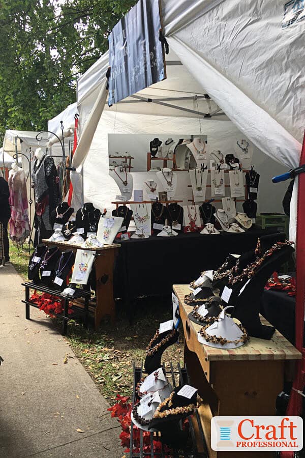 I've seen this jewelry designer at several shows, and his booth is always filled with customers.