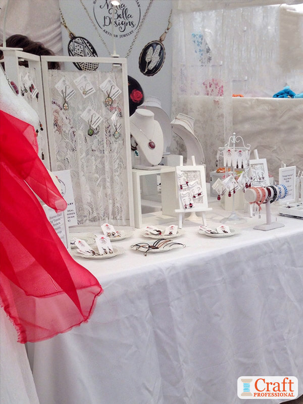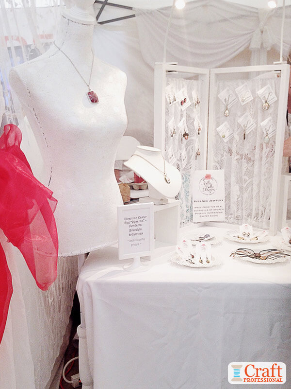 Here's the opposite look for a handmade jewelry display - an all white booth.